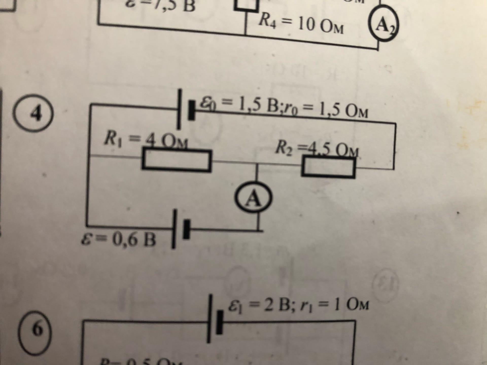 Найти показание амперметра(амперметров) в прикреплённой схеме. Сопротивлением амперметра пренебречь.Сопротивление источников учитывать в случаях, если оно указано на схеме.