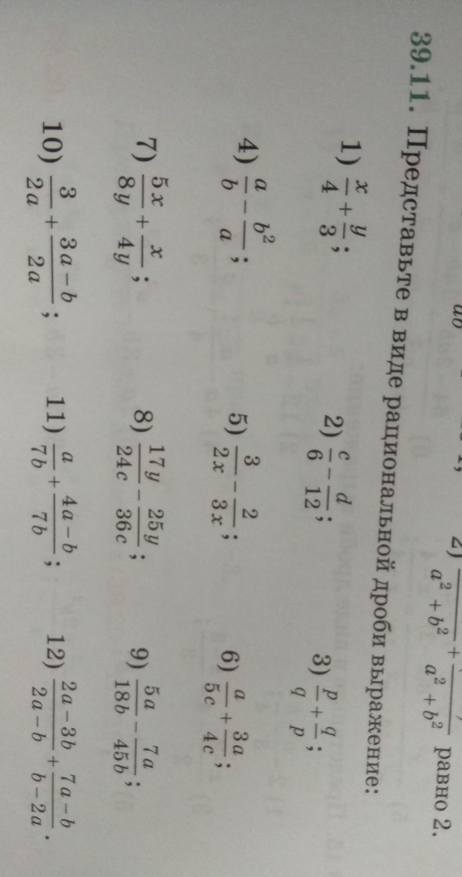 39.11. Представьте в виде рациональной дроби выражение (помогите пожалуйста даю много баллов) и 39.12