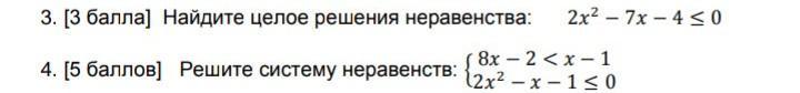 т.к. -0,5 не является целым числом => целыми решениями неравенств являются: