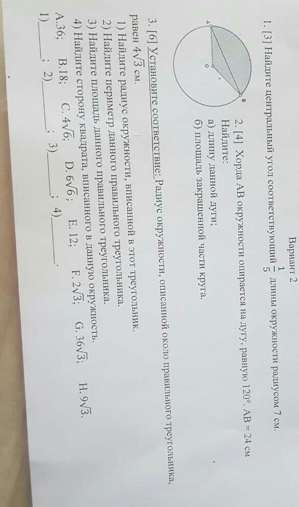 Найдите центральный угол соответствующие 1