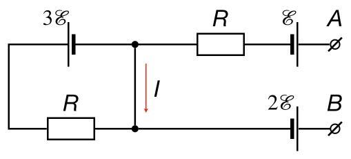 Определите разность потенциалов φA−φB между точками A и B участка электрической цепи. I=30 мА, E=4,5 В, R=50 Ом. Ответ выразите в вольтах, округлите до десятых.