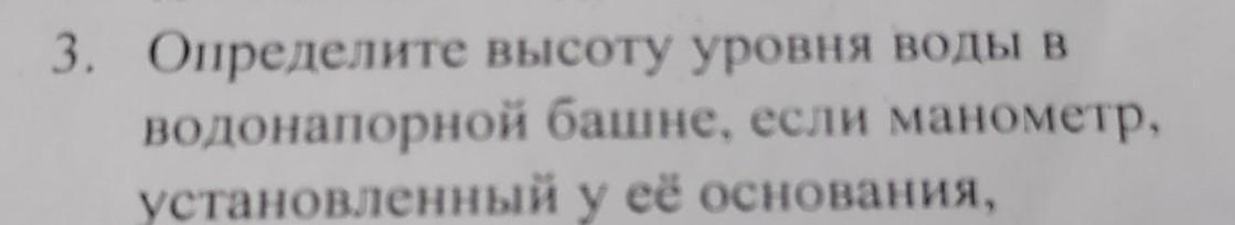 р=190 Па h = р/pg = 190 Па / 1000 кг/м3 * 10 H/кг = 1,9 м.