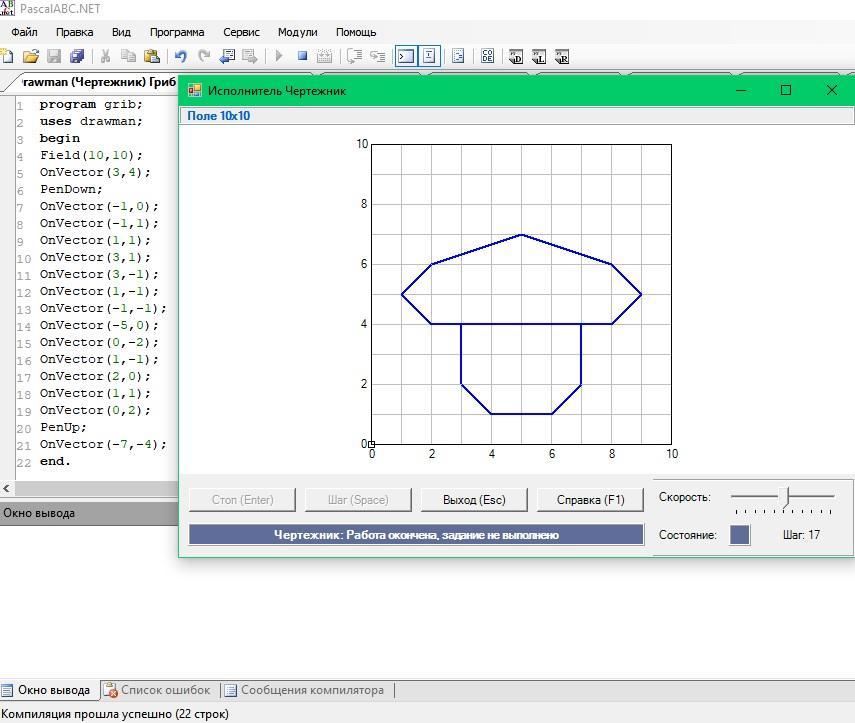 Команда OnVector (x,y) - перемещает перо Чертежника на вектор (x,y).