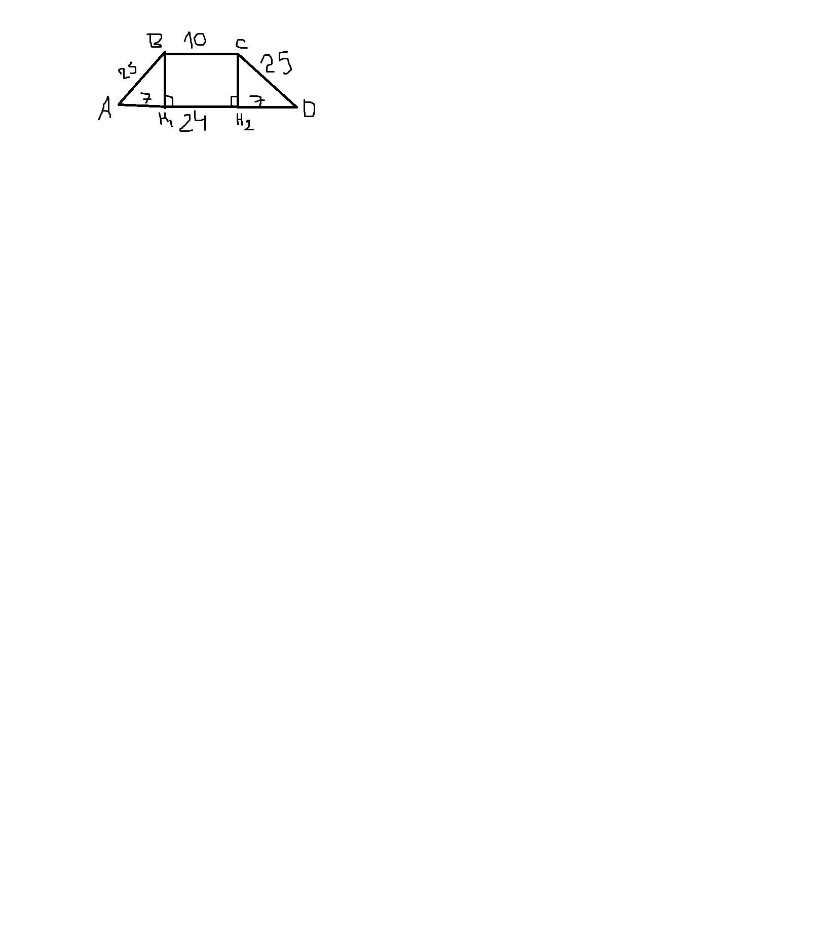 проведем высоты ВН1 и СН2 мы получим прямоугольник со стороной 10 см и 2 прямоугольных треугольника с катетами 25 см и 7 см