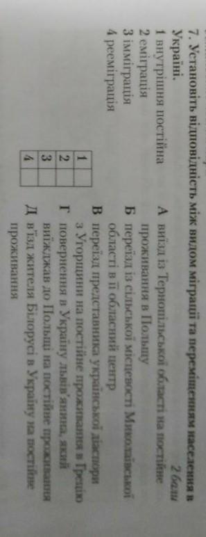 установіть відповідність між видом міграції та переміщення населення в Україні