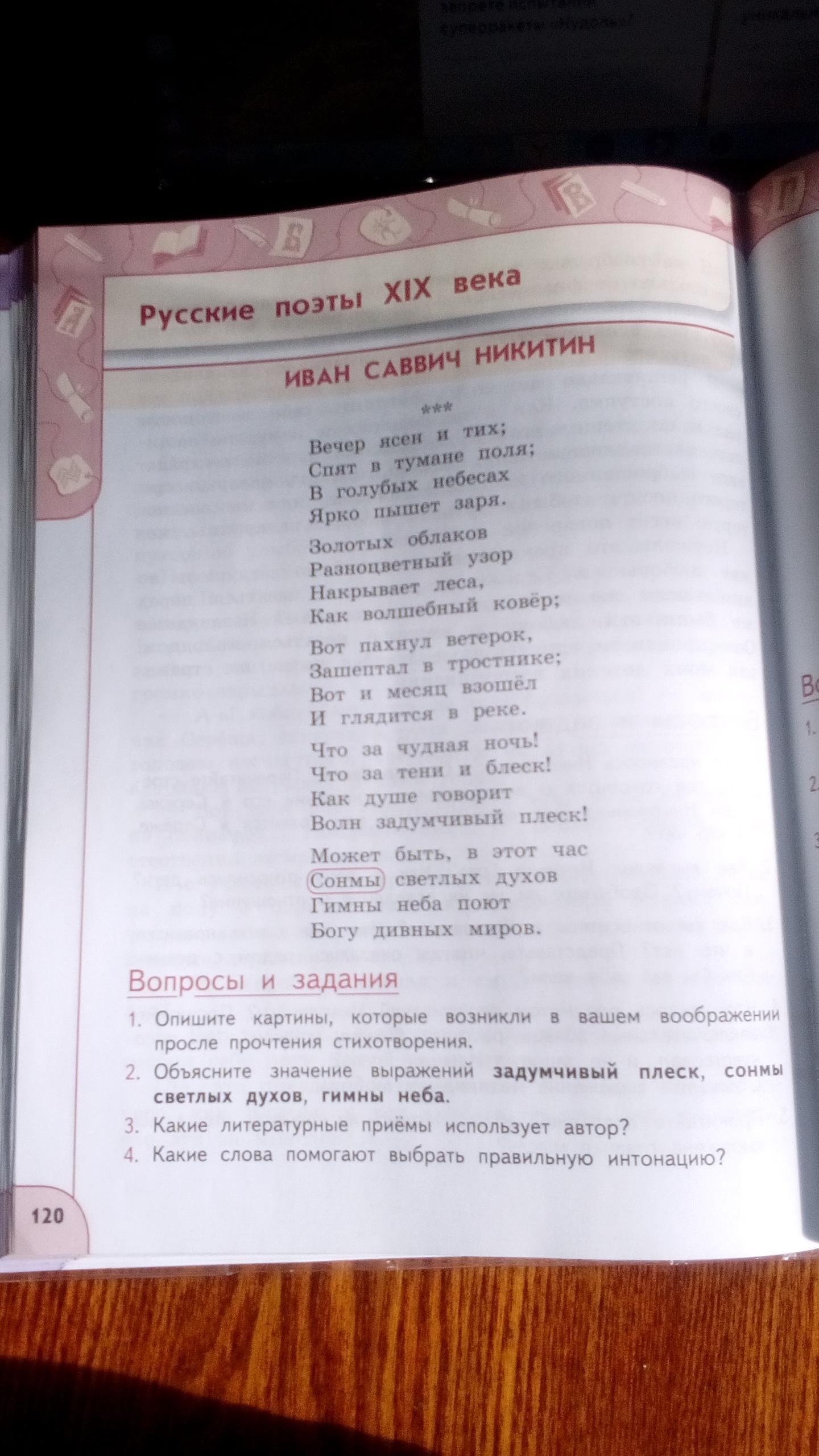 2. Объясните значения выражений ЗАДУМЧИВЫЙ ПЛЕСК, СОНМЫ СВЕТЛЫХ ДУХОВ, ГИМНЫ НЕБА.