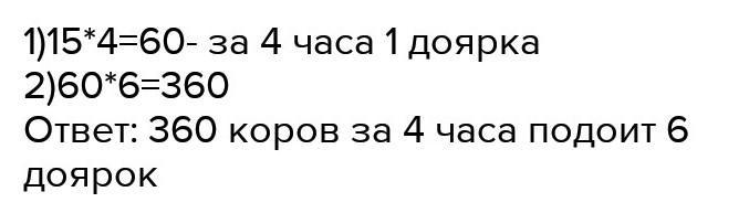 2. Доїльним апаратом доярка за 1 год видоює 15 корів. Скільки корів видоять такими апаратами 6 доярок за 4 год? *