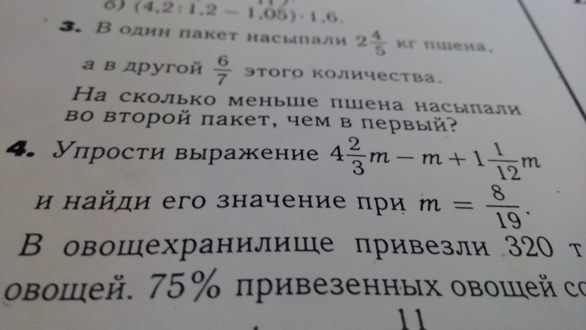 4 frac{2}{3}m-m+1 frac{1}{12}m =  frac{14}{3}m -  frac{12}{12}m+ frac{13}{12}m= frac{56m-12m+13m}{12} =4 frac{9}{12}m = 4frac{3}{4}m
