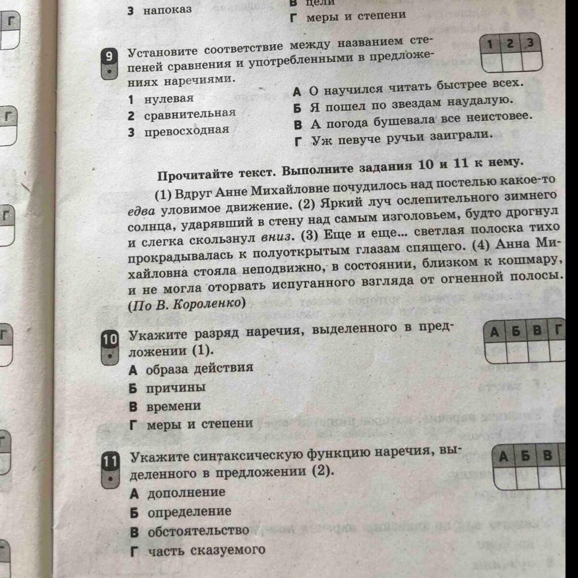 11. Едва - наречие меры и степени. Ответ Г