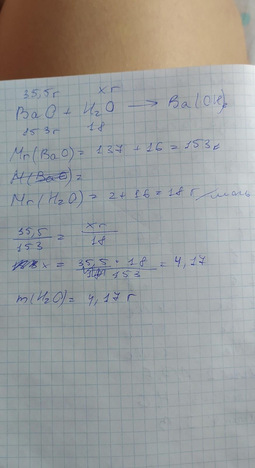 Барій оксид масою 35,5 г повністю сполучився з водою. Яка маса води витратилась?