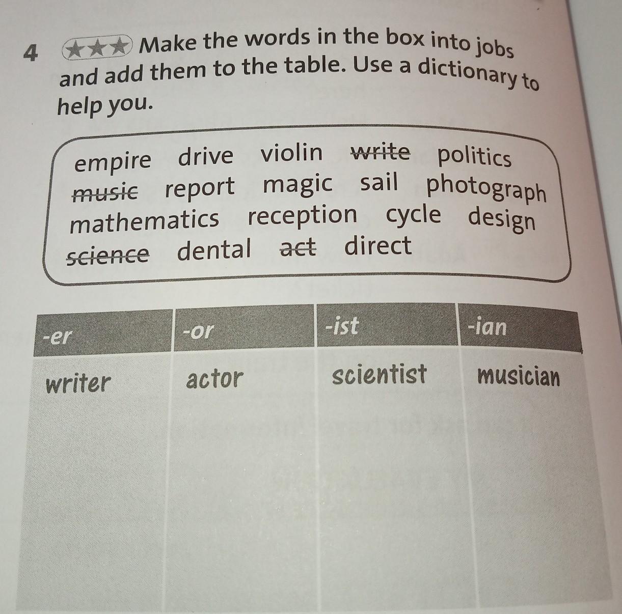 -ist: scientist, violinist, receptionist, cyclost, dentist