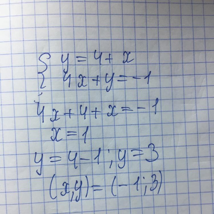 Ответ (х;у)=(-1;3). Надеюсь Вам помог!