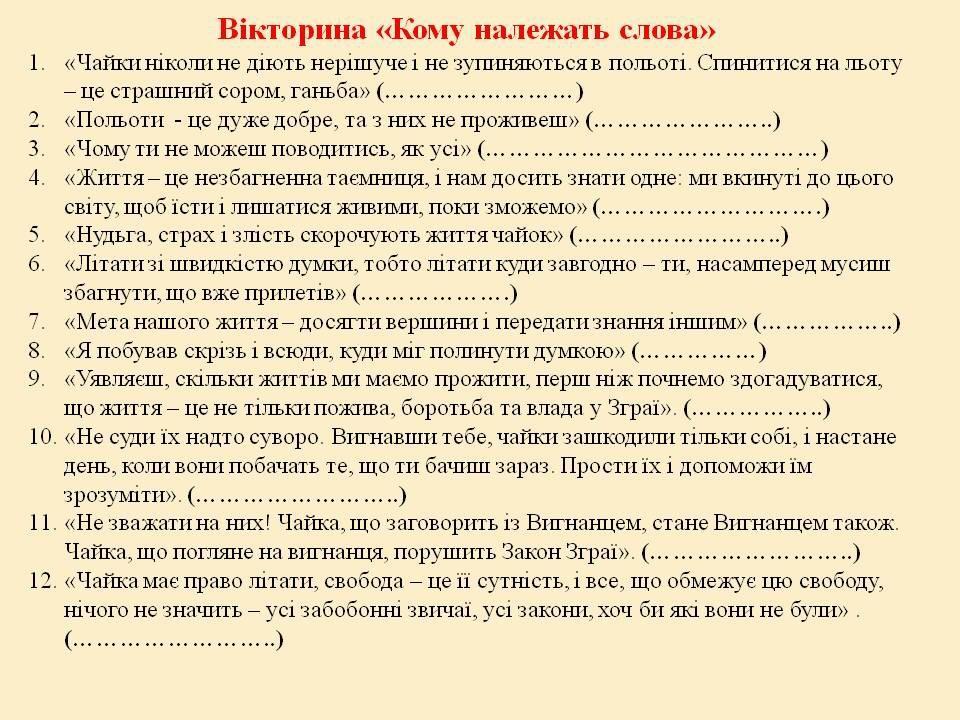 Помогите решить Чайка Джонатан Лівінгстон