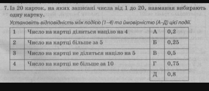 5/20=1/4=025, вероятности остальных находим аналогично получаем ответ