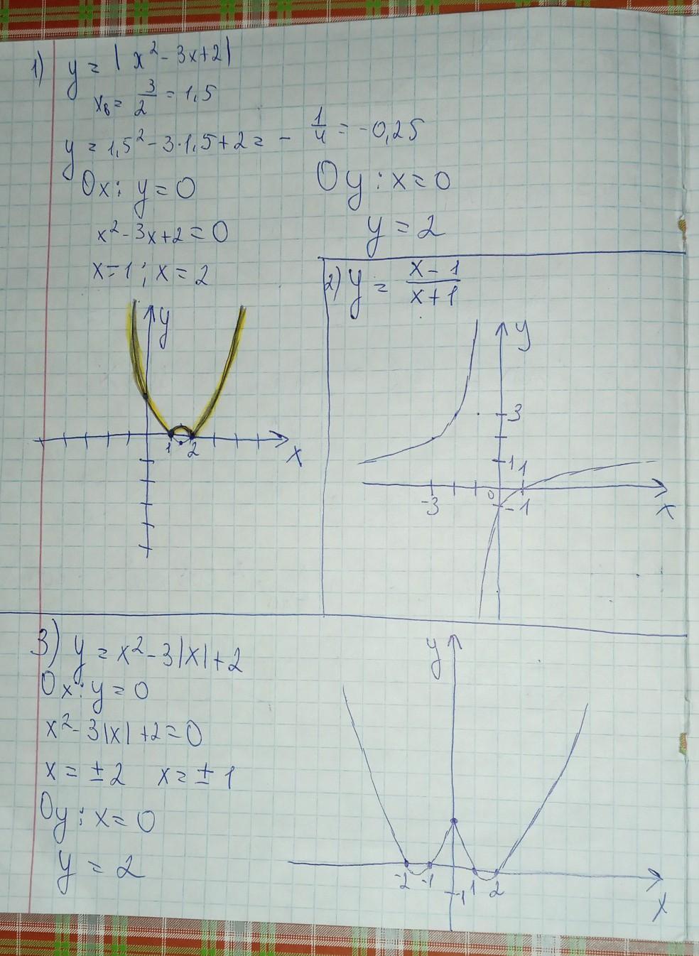1. y = |x² - 3x + 2|