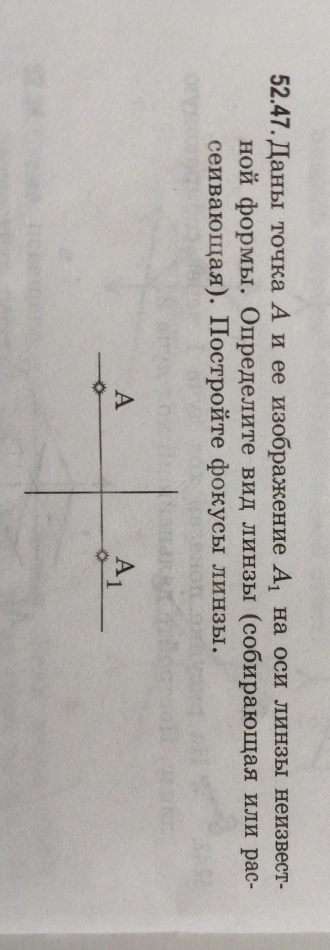 52.47. Даны точка А и ее изображение А, на осн линзы неизвест-