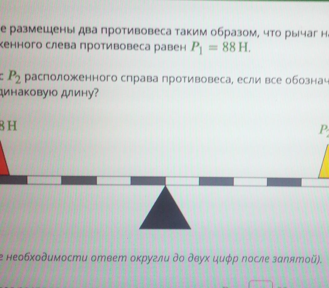 Каков вес Р2 расположенного справа противовеса, если все обозначенные на