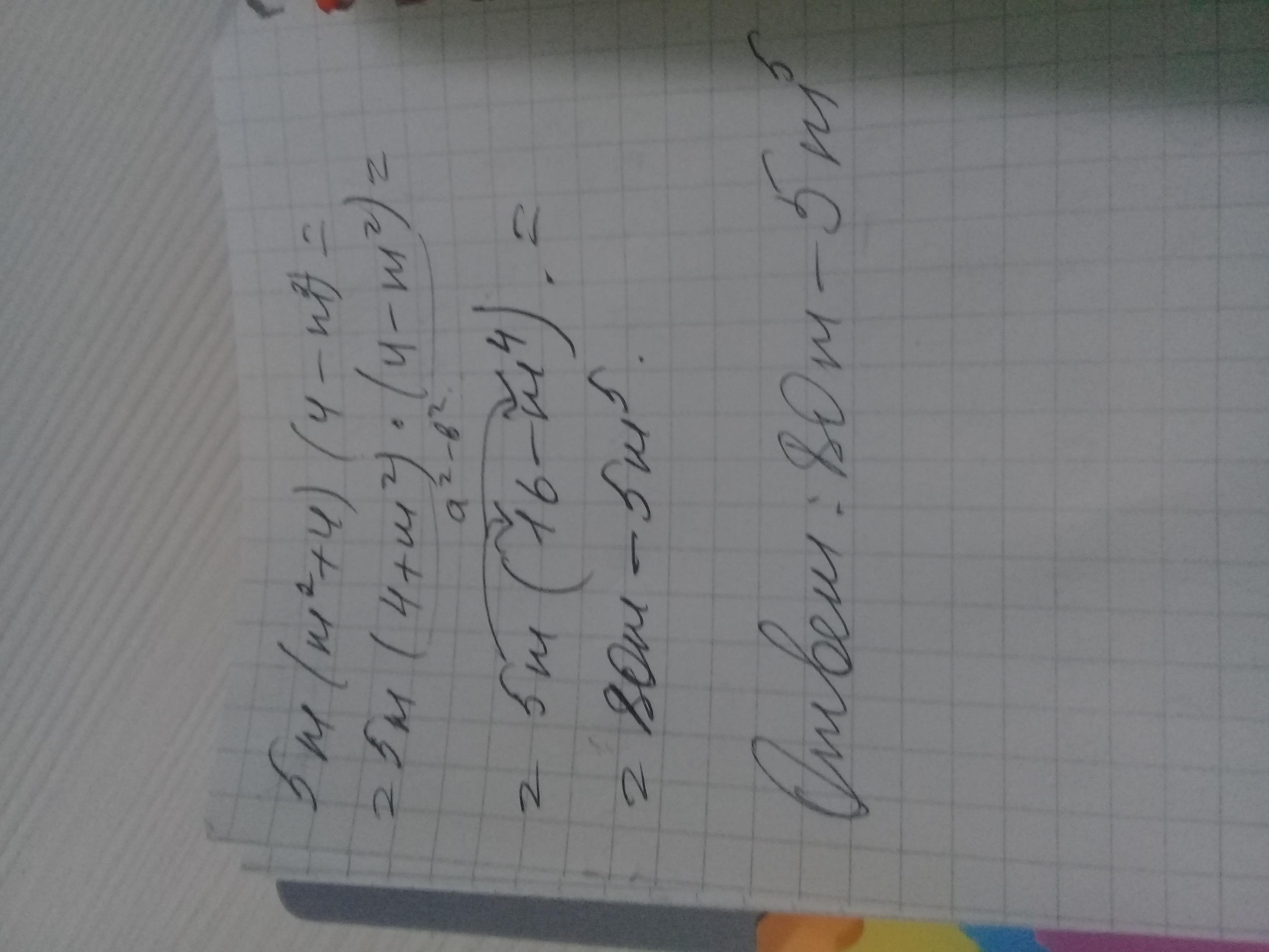 = (5m^3+20m)(4-m^2) = 20m^3-5m^5+80m-20m^3= -5m^5+80m