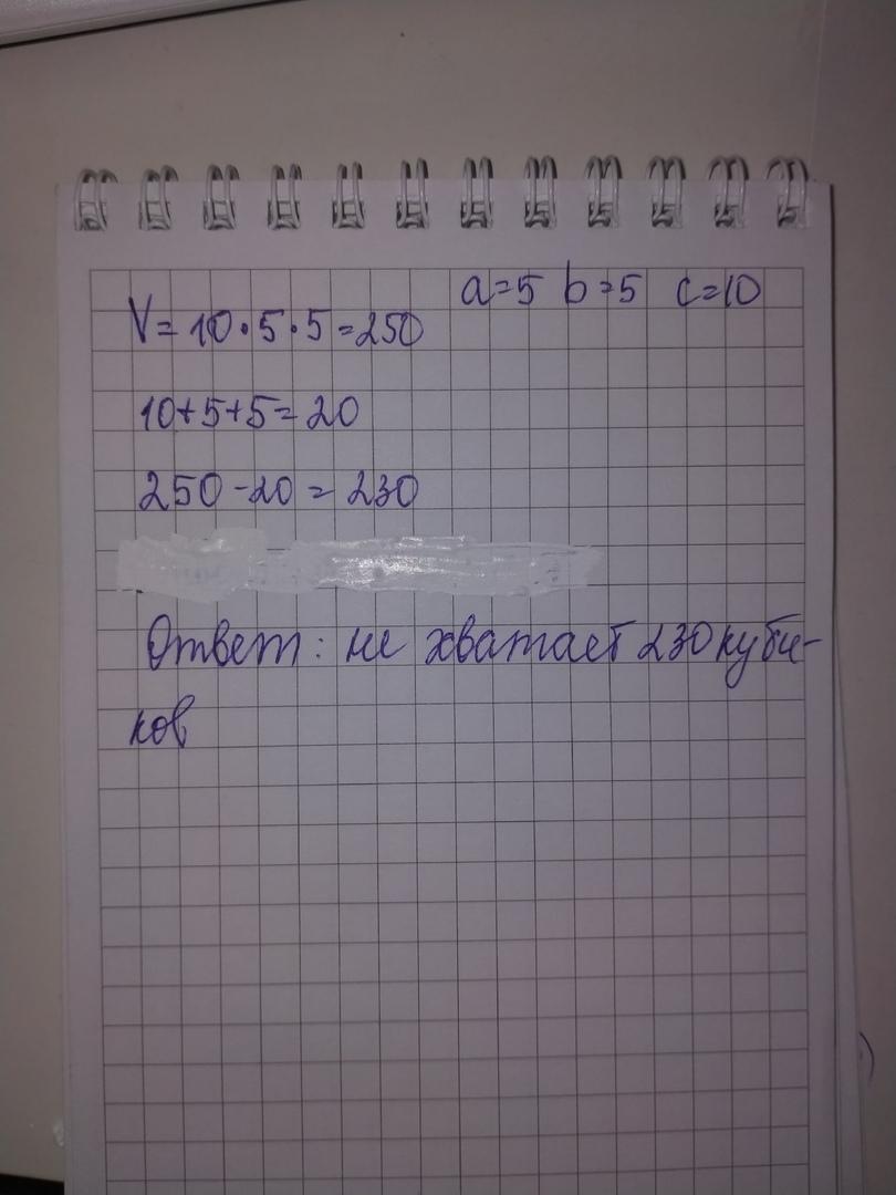 если высота 5 кубиков, длина - 9 кубиков , ширина - 5 кубиков.