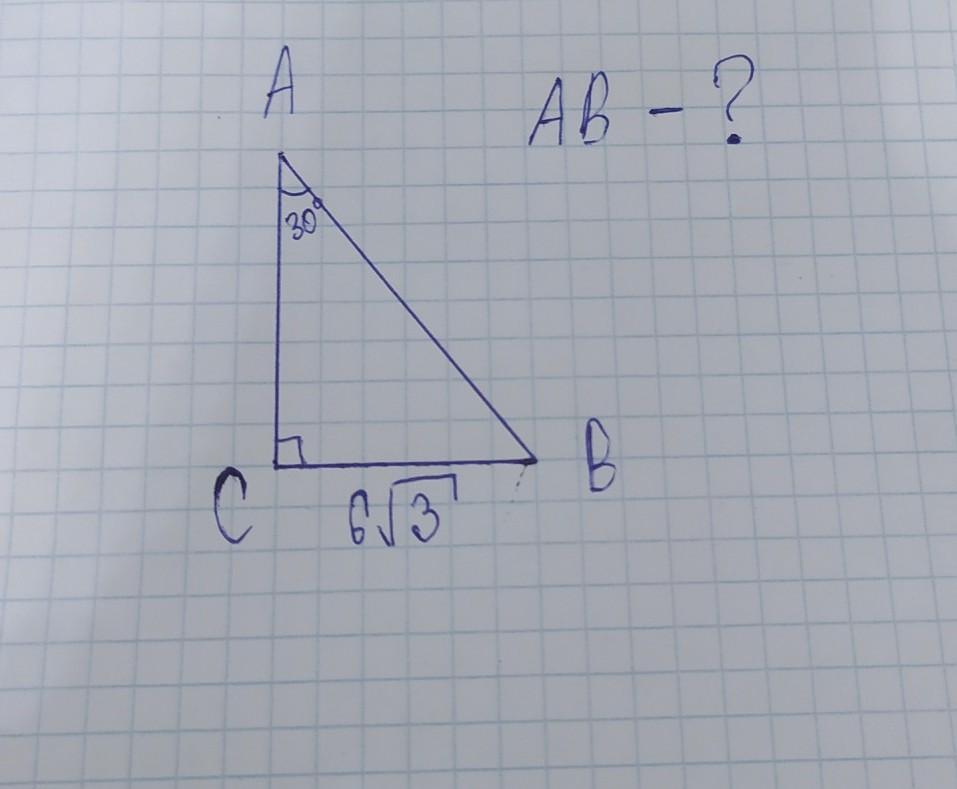 Нам этот катет (СВ) уже дан. Он равен 6√(3). Найти гипотенузу (АВ) очень просто.