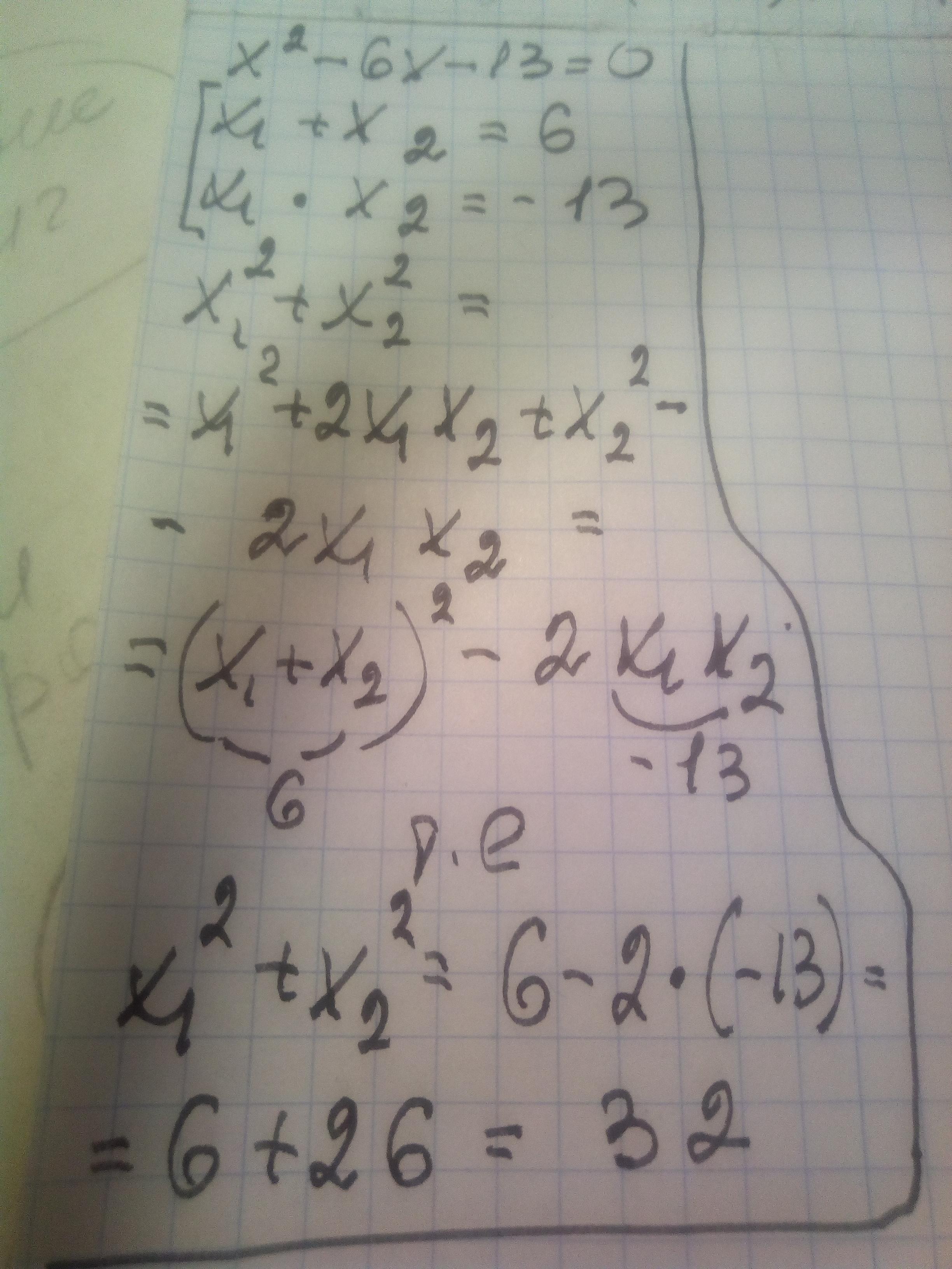 Не розв’язуючи рівняння x²–6х-13=0, знайдіть значення виразу х1²+х2²,