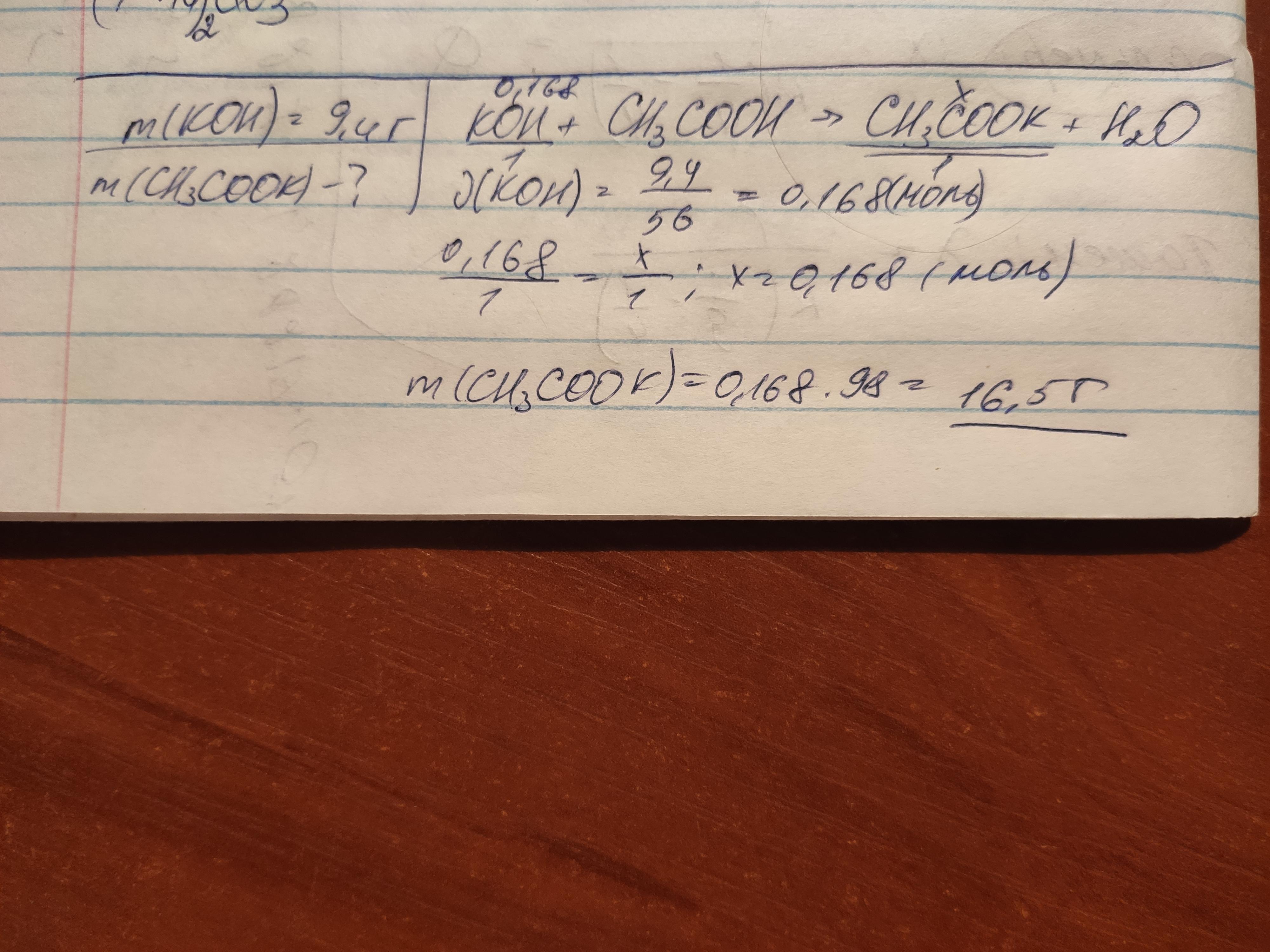 Очисліть масу солі, що утворитья внаслідок взаємодії 9,4г калій оскиду з наблишком етанової кислоти.