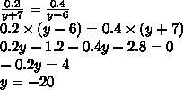 0,2/y+7=0,4/y−6