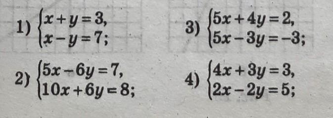 РЕШИТЕ МЕТОДОМ СЛОЖЕНИЯ , ПОДСТАНОВКИ И ГРАФИЧНО (С ТАБЛИЦЕЙ И ПОДРОБНЫМ РЕШЕНИЕМ В ГРАФИЧНОМ) ВСЕ 4 УРАВНЕНИЯ. ПОЖАЛУЙСТА, СРОЧНО НУЖНО