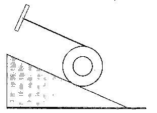 Полная катушка с нитками расположена на наклонной плоскости так, как показано на рисунке. Сделайте чертеж и покажите силы, действующие на катушку и их плечи.