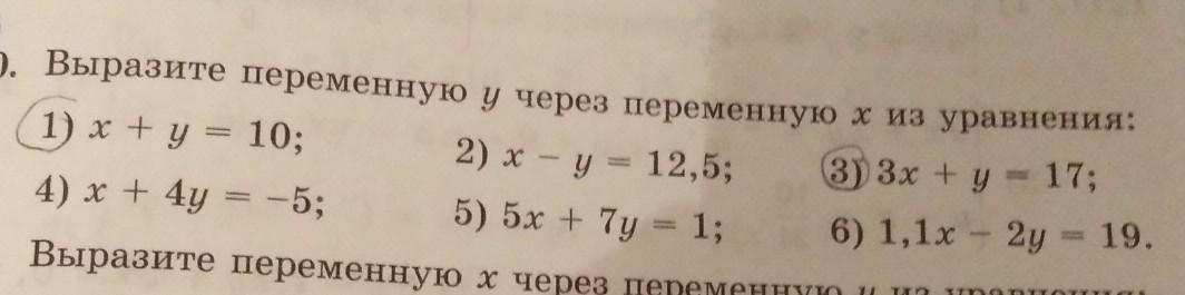 (1) x+y= 10; 2) х - у = 12,5; 3) 3х +y= 17;