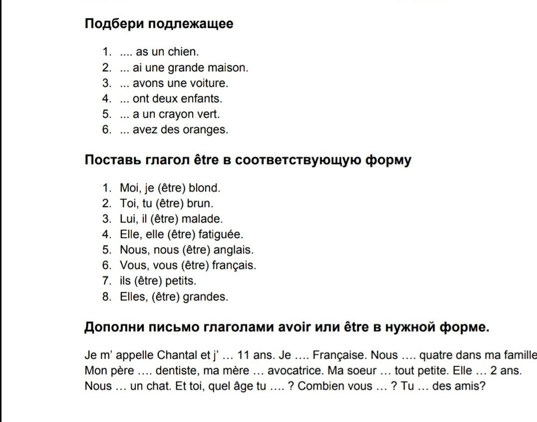 1. j'ai 2. Je suis 3. Nous sommes 4. Mon père est 5. ma mère est 6. Ma soeur est 7. Elle a 8. Nous avons 9. tu as 10. vous êtes 11. Tu as