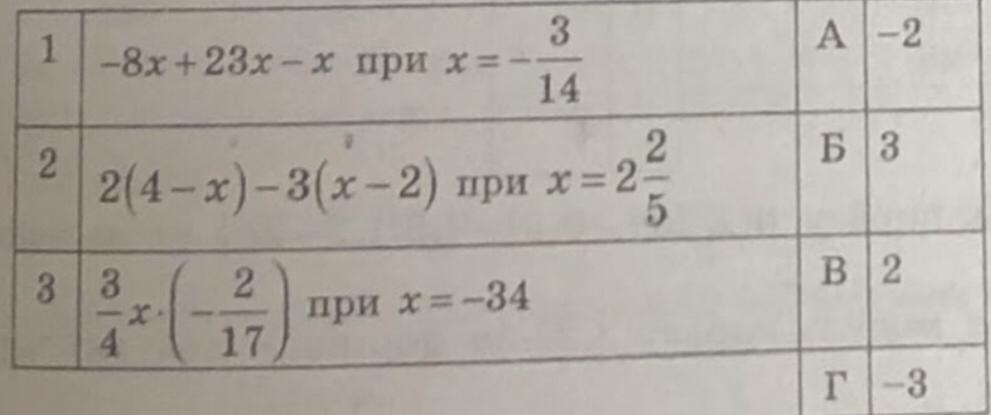 Установіть відповідність між виразом (1-3) та його значенням (А-Г) при заданому значенні змінної