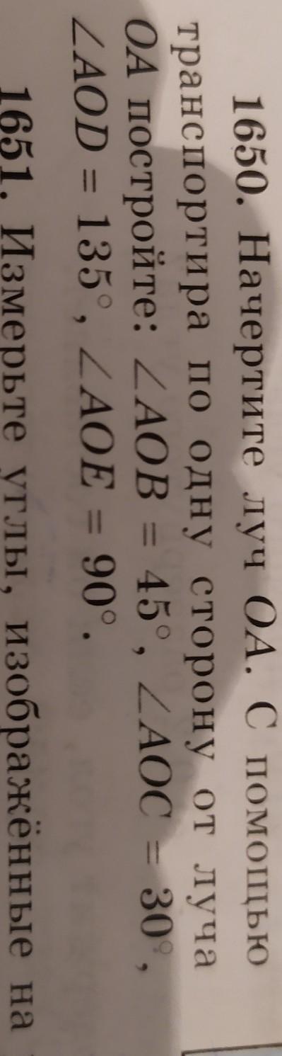 2. По ту же сторону (где нет конца у данного луча) прикладываешь транспортир (разумеется от начала луча ОА).