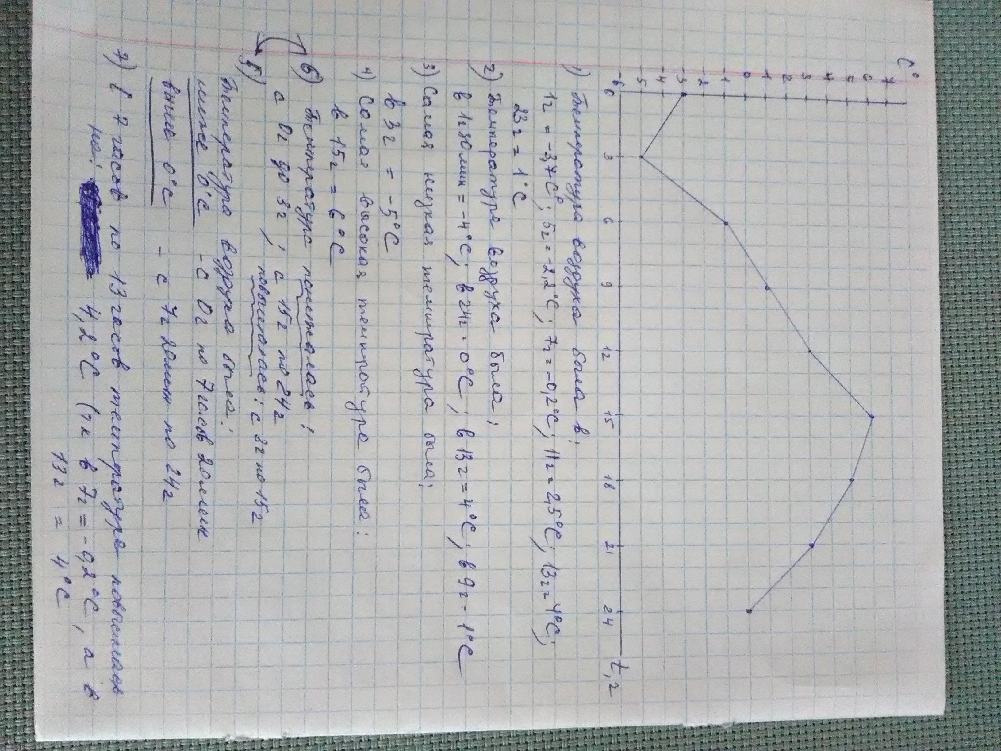 5) На протяжении каких промежутков времени температура воздуха была ниже 0°С; выше 0°С;