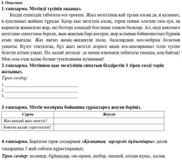 1-Қолөнер бұйымдары еліміздің ежелден келе жатқан дәстүр.