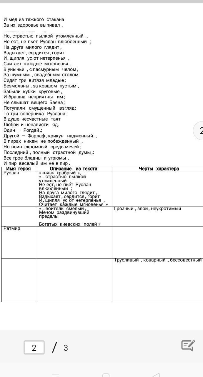 Заполнить таблицу Руслан и Людмила.СОР СРОЧНО ОТДАМ 80БАЛЛОВ .СРОЧНООО!!!!!!!!!!!ПРОШУУУ
