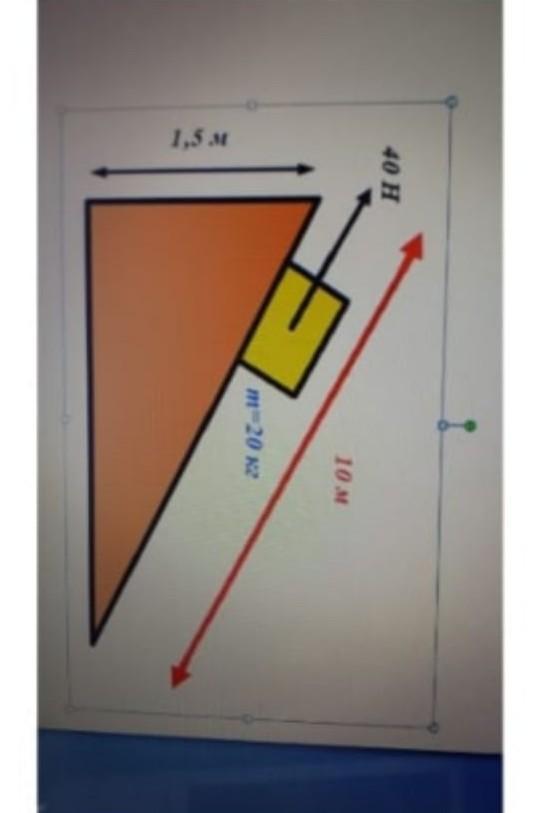 Суретте көлбеу жазықтық көмегімен m массалы жүкті һ биіктікке көтерген. 1)Пайдалы жұмысты анықтаңыз 2)Толық жұмысты анықтаңыз 3)Көлбеу жазықтықтың ПӘК- ін анықтаңыз