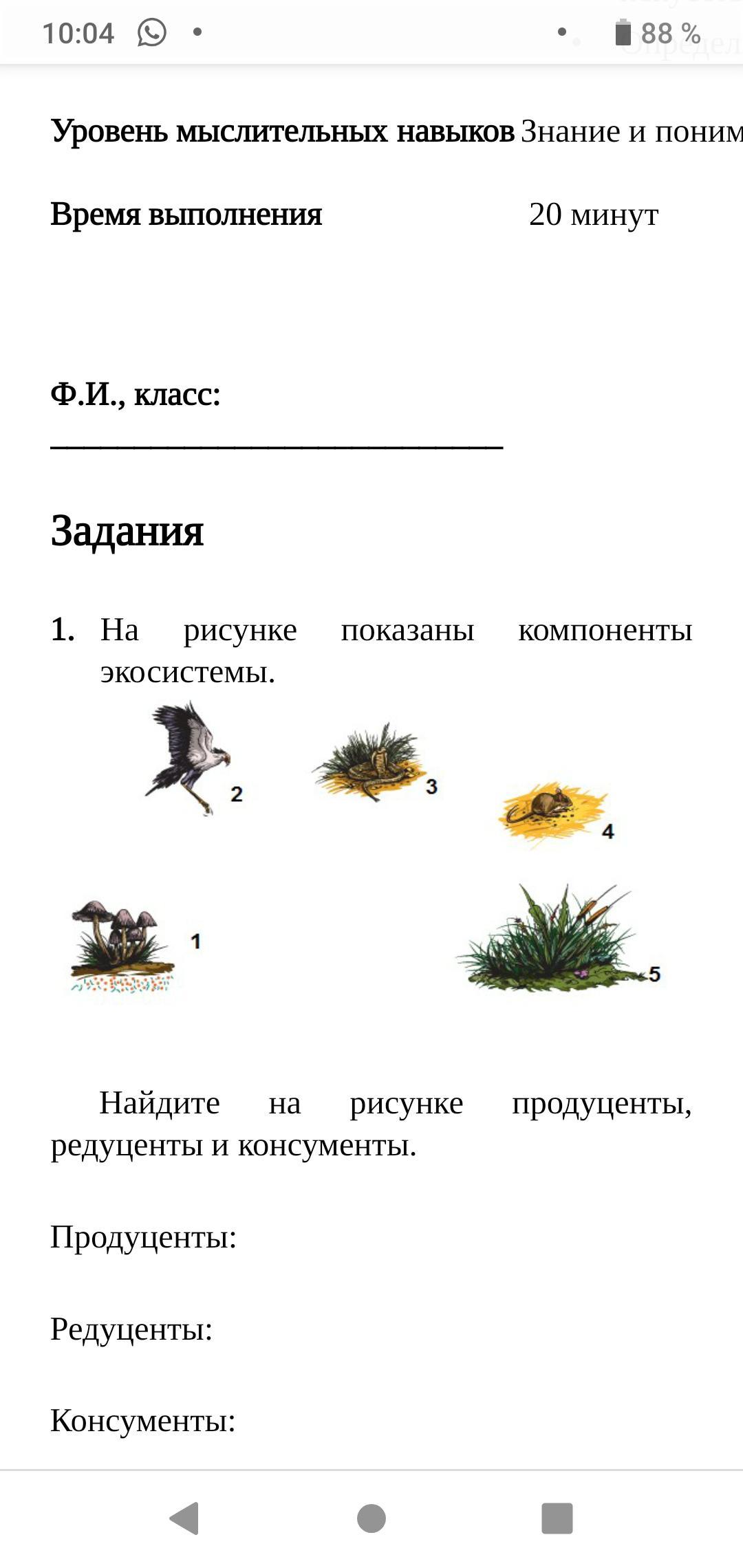 На рисунке показаны компоненты экосистемы.Найдите на рисунке продуценты,редуценты и консументы.По естествознанию