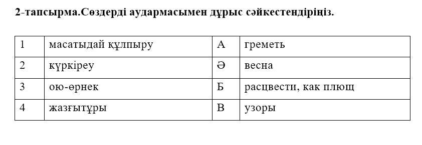 2-тапсырма.Сөздерді аудармасымен дұрыс сәйкестендіріңіз.