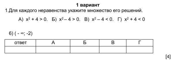 А) х2 + 4 > 0. Б) x2 – 4 > 0. В) x2 – 4 < 0. Г) х2 + 4 < 0