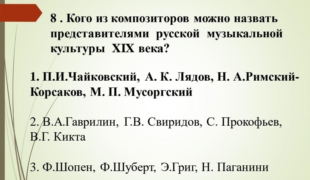 1)П. И. Чайковский, Н. А. Римский-Корсаков, М. П. Мусоргский