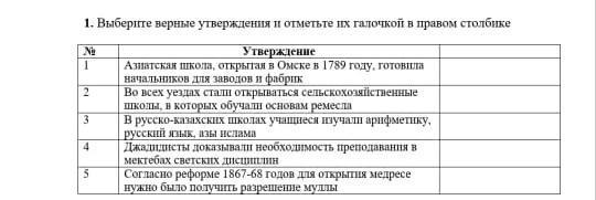 1. Выберите верные утверждения и отметьте их галочкой в правом столбике