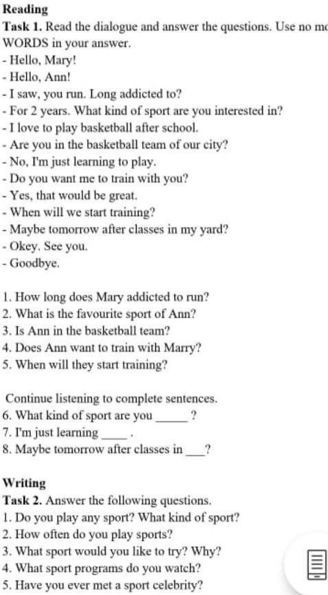 (Какой вид спорта тебе интересен?)