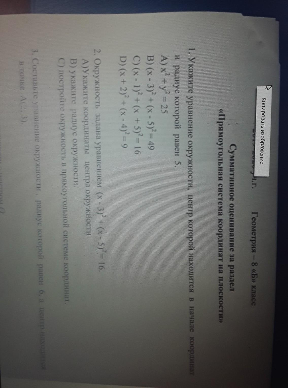 СРОЧНО 50 баллов.Сор идет плизз Укажите уравнение окружности центр которой находится в начале координат и радиус которой равен 5 второе задание окружность задана уравнением