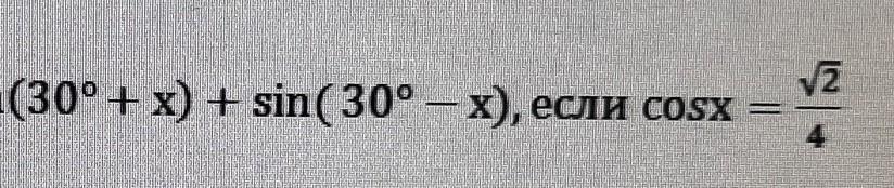 3.Найдите значение выражения: sin(30° + x) + (30° - x),если cosx = корень 2 / 4