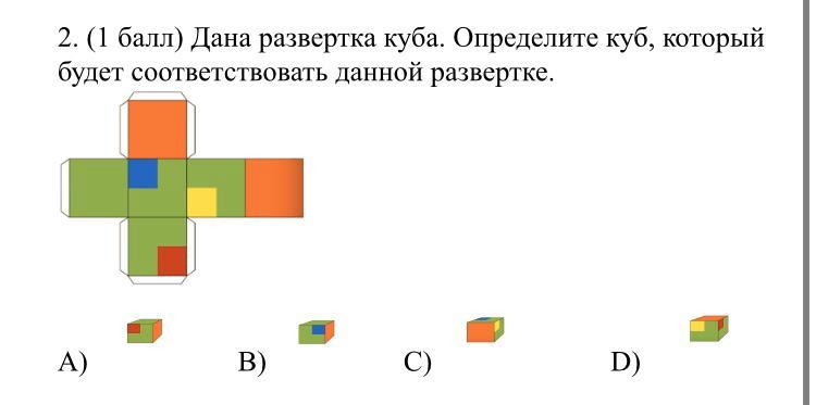 Пошаговое объяснение: Надо в голове попробовать собрать куб у меня были проблемы иза двух аранживых