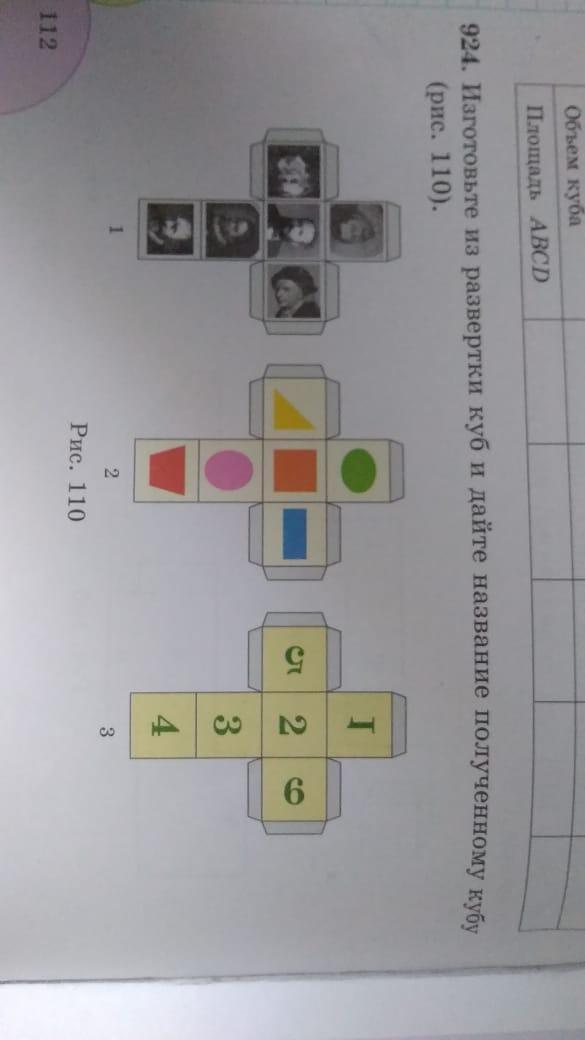 изготовьте из развертки куб и дайте название полученному кубу