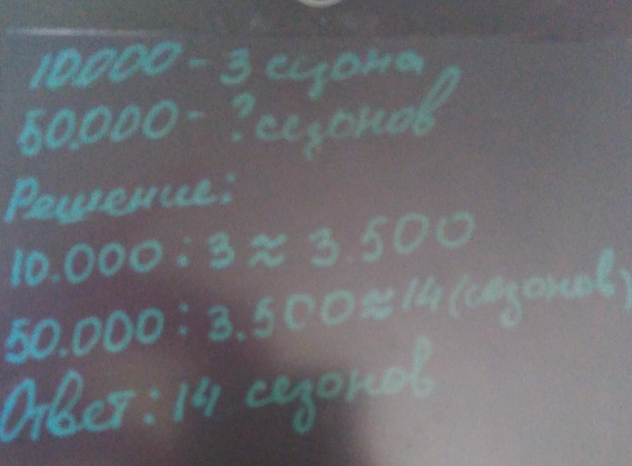 чтобы накопить 10000 мне нужно 3 сезона - 1 сезон 14 дней мне нужно будет 50000 через сколько сезонов я накоплю каждый сезон я получаю +-3500