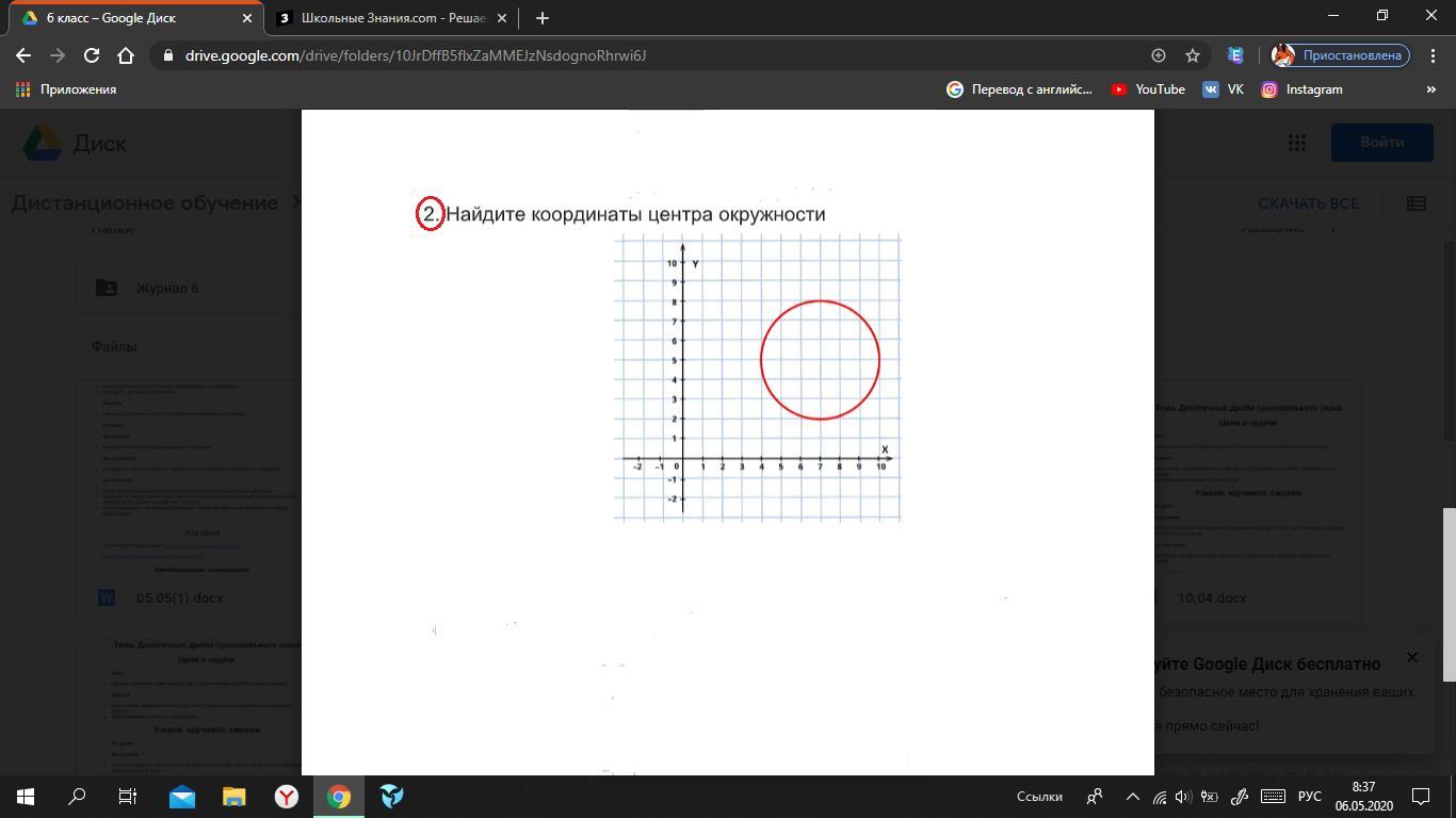 для получения первой координаты нужно отсчитать нужное кол-во клеток по оси х (абцисс) , для второй, по оси у (ординат)