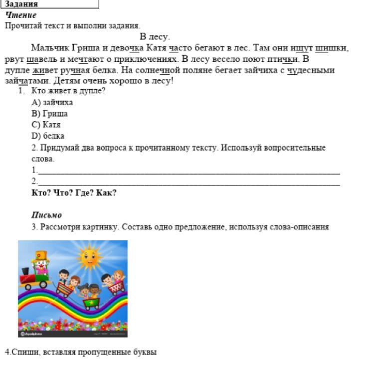 2. Придумай два вопроса к прочитанному тексту. Используй вопросительные